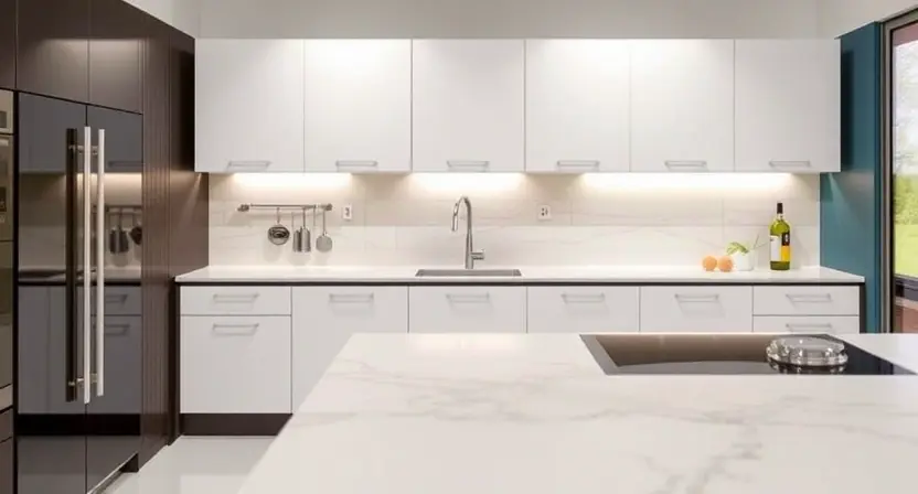 Фасады с покрытием Soft Touch обладают рядом преимуществ перед пленочными аналогами. Поскольку эмаль и лак окутывают деталь целиком (включая торцы), отсутствуют клеевые швы, куда могла бы попасть влага или грязь. Это делает такие кухни устойчивыми к перепадам влажности и температуры, что критически важно для зоны готовки.