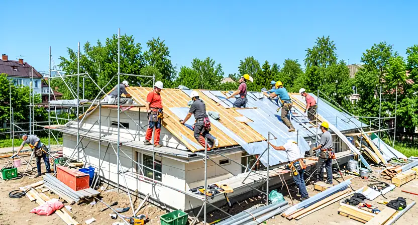 Капитальный ремонт предполагает полную замену кровельного покрытия и/или ремонт стропильной системы. Он требуется при значительном износе более 30-50% площади кровли, серьезных протечках, повреждениях несущих элементов или при желании сменить тип кровли.