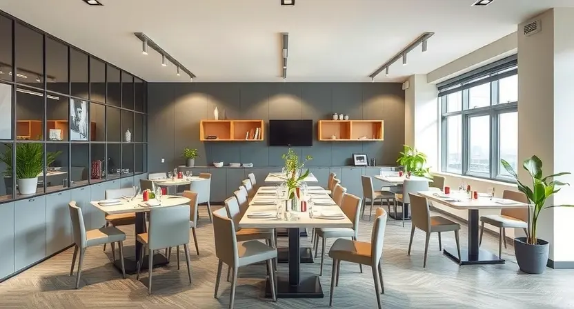 Правильное зонирование подразумевает четкое разделение «грязной» зоны (мойка, мусорные ведра), зоны приготовления (микроволновые печи, кофемашины) и зоны потребления пищи (столы и стулья). Это минимизирует хаос в часы пик.